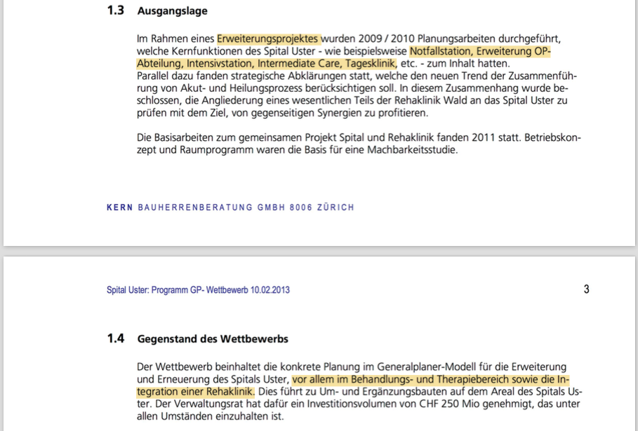 Kein anderes Spitalneubauprojekt baut die Kapazität dermassen aus (Wetzikon, Bülach, Limmattal, …). Die Bettenbelegung am Spital Uster liegt mit 76.5% gar unter dem kantonalen Durchschnitt (78.4%).